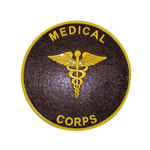 Made from solid mahogany this United States Army Medical Corps seal wooden plaque is hand carved and finished by our expert craftsmen. The mahogany is cured and treated at our own factory to avoid warping and twisting over the years and a special keyhole slot is recessed into the rear to ensure a flush fitting on ay wall surface.