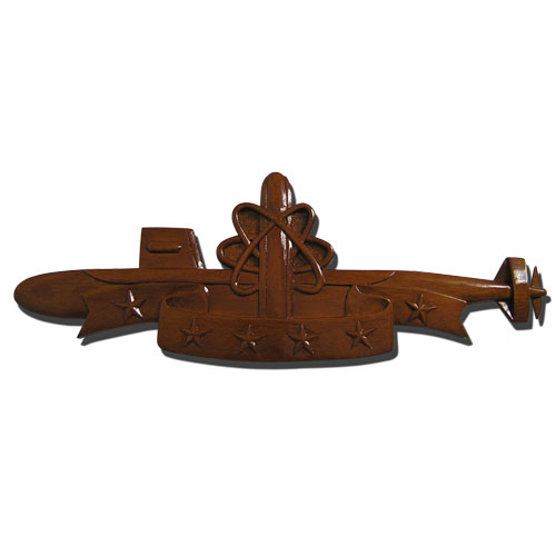 Made from solid mahogany this custom made United States Navy Submarine Deterrent Patrol Insignia wooden wall plaque is hand carved and finished by our expert craftsmen. The mahogany is cured and treated at our own factory to avoid warping and twisting over the years and a special keyhole slot is recessed into the rear to ensure a flush fitting on any wall surface. Our custom plaques are made of the highest quality solid mahogany and are perfect for office wall hangings, podiums and unique gifts.