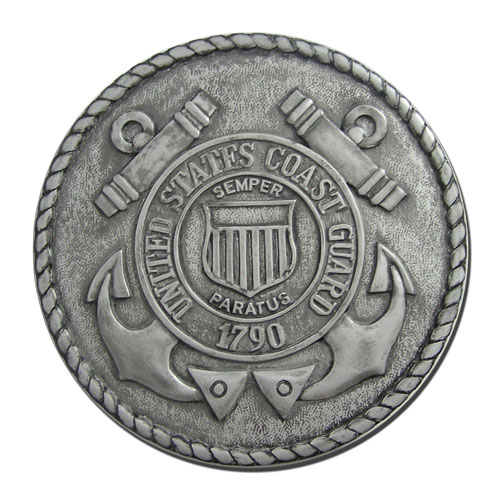 Made from solid mahogany this custom made United States Coast Guard (USCG)Antique Silver Colored Seal wooden plaque is hand carved and finished by our expert craftsmen. The mahogany is cured and treated at our own factory to avoid warping and twisting over the years and a special keyhole slot is recessed into the rear to ensure a flush fitting on any wall surface. Our custom plaques are made of the highest quality solid mahogany and are perfect for office wall hangings, podiums and unique gifts.