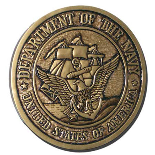 USN ANTIQUE GOLD COLORED SEAL WOODEN PLAQUE